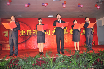晚会伊始,总经理高进华向全体员工及家属表达了新年的祝福和美好的祝愿。他说,我们要通过晚会创造一个和谐的气氛。一个家庭或者一个企业,都需要和谐。我们过去所有成绩的取得,都是得益于公司的开拓进取和创新发展,得益于公司文化建设的引领和成就。如果我们这次晚会做得比去年好,大家明年肯定还会再来。所以我们要创新,要创建一个和谐的史丹利。高进华强调,今年的晚会在现场布局和节目内容上有了很多创新,这就是进步。希望在新的一年,我们能把平凡的事情做经典,把简单的事情做精彩,以创新的思路,崭新的姿态,创造史丹利更加美好的明天。